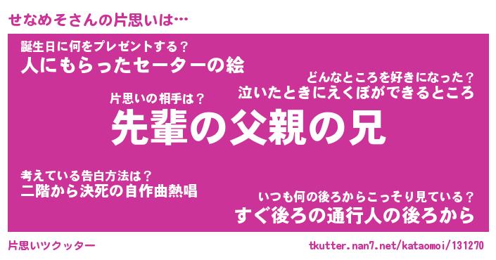 | ヘコむあだ名 | 『せなにゅー』『つくし』『せなっぺ』 |