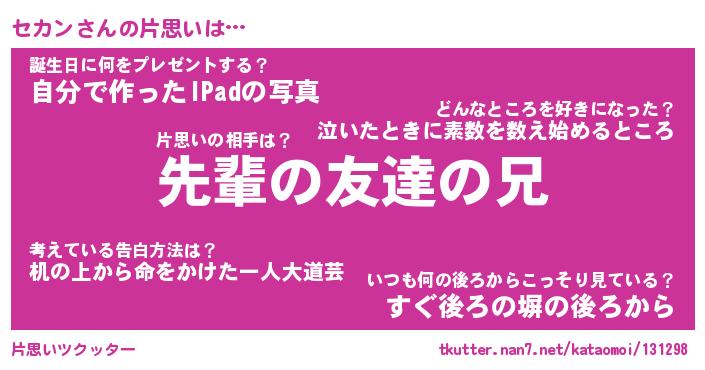 | ヘコむあだ名 | 『セカっふぃ~』『つくし』 |