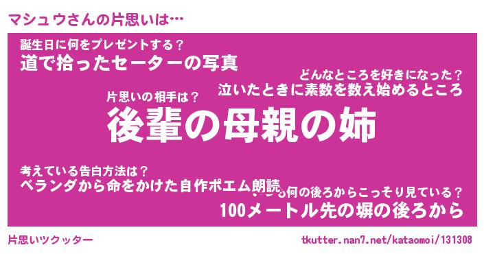| ポケモン風あだ名 | 『マシチュウ』『マシュダネ』 |