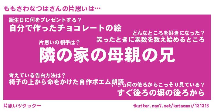 | 恥ずかしいあだ名 | 『プリティーももさわなつは』『ももちん』 |