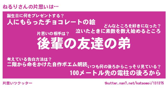 | 2回繰り返すあだ名 | 『ねるねる』『ねねるる』『ぬれぬれ』 |