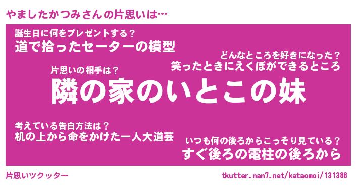 | 男性向けラノベタイトル風あだ名 | 『やましたかつみの憂鬱』 |
