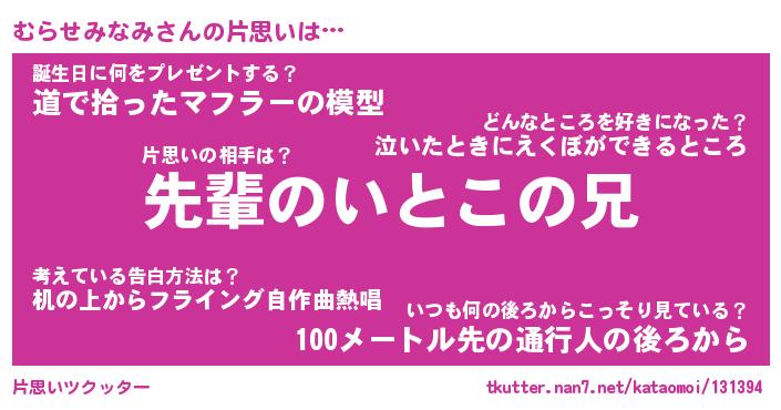 | 意味不明あだ名 | 『ペロリンむらせみなみ』 |