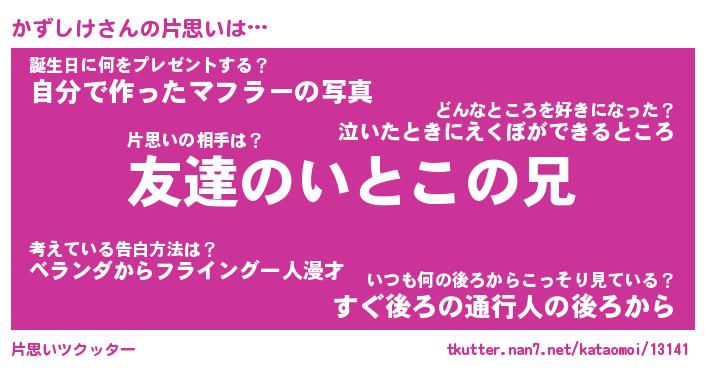 | ヘコむあだ名 | 『かずもー』『なまこ酢』『かずお』 |