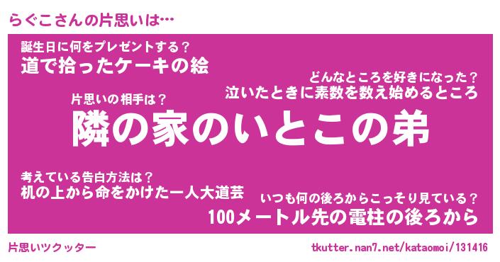 | 意味不明あだ名 | 『ペロリンらぐこ』『らぐこフォーエバー』 |