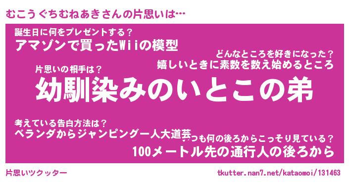 | 男性向けラノベタイトル風あだ名 | 『むこうぐちむねあきの憂鬱』 |