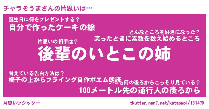 | 胡散臭い通販商品みたいなあだ名 | 『モテモテ間違いなし水晶球…その名も「チャラそうま」』 |