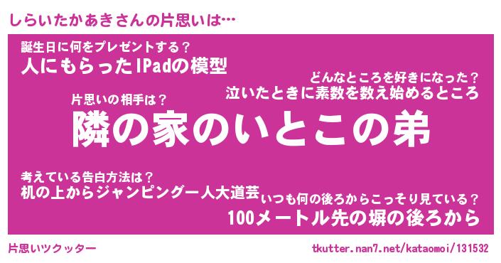 | 胡散臭い通販商品みたいなあだ名 | 『モテモテ間違いなし水晶球…その名も「しらいたかあき」』 |