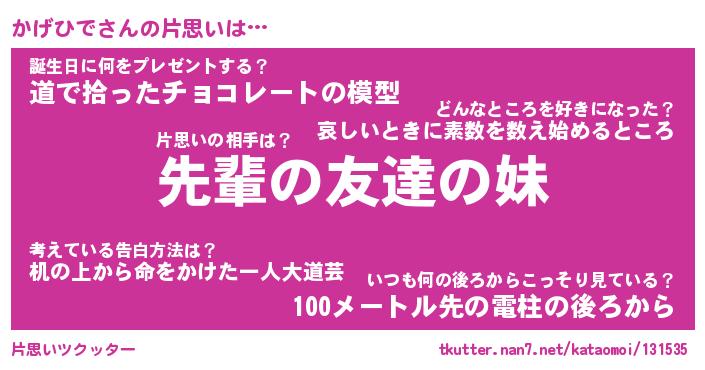 | 2回繰り返すあだ名 | 『かげかげ』『かかげげ』『なあなあ』 |