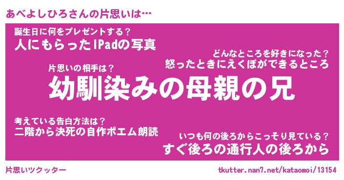 | 男性向けラノベタイトル風あだ名 | 『あべよしひろの憂鬱』 |