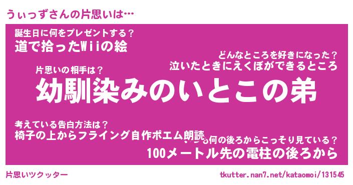 | ポケモン風あだ名 | 『ウィチュウ』『ウィッダネ』 |