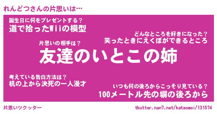 | ヘコむあだ名 | 『れんにゅー』『豆乳』『れんっ子』 |