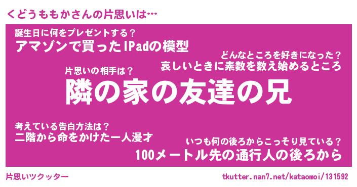 | 男性向けラノベタイトル風あだ名 | 『くどうももかの憂鬱』 |