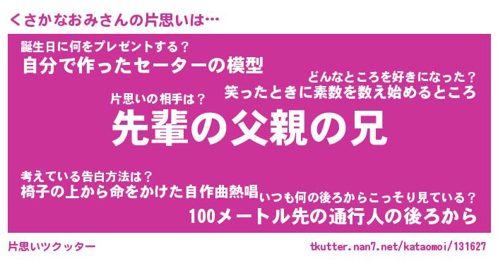 | 男性向けラノベタイトル風あだ名 | 『くさかなおみの憂鬱』 |