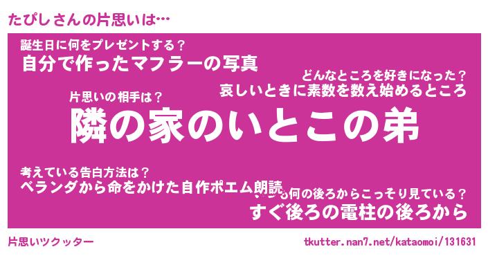 | ヘコむあだ名 | 『たぴにゅー』『つくし』 |