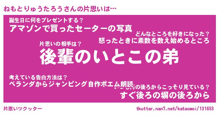 | 意味不明あだ名 | 『ペロリンねもとりゅうたろう』 |