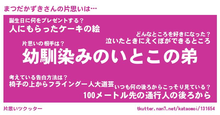 | ヘコむあだ名 | 『まつにゅー』『つくし』 |