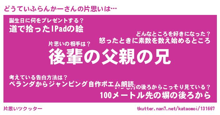 | 意味不明あだ名 | 『ペロリンどうていふらんかー』 |