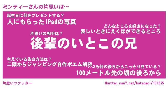 | ポケモン風あだ名 | 『ミンチュウ』『ミンテダネ』 |