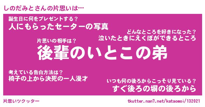 | ファンタジー風あだ名 | 『シノフェル』『エターナルシノダミトー』 |