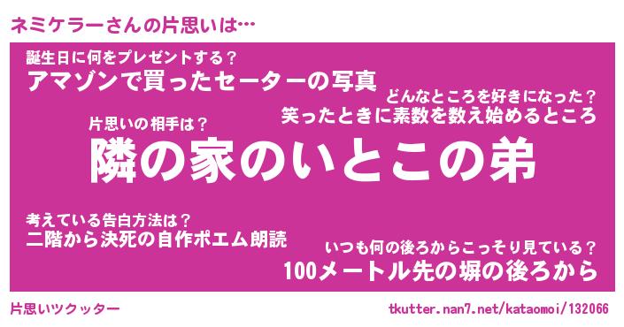 | ヘコむあだ名 | 『ネミもー』『なまこ酢』『ネミお』 |