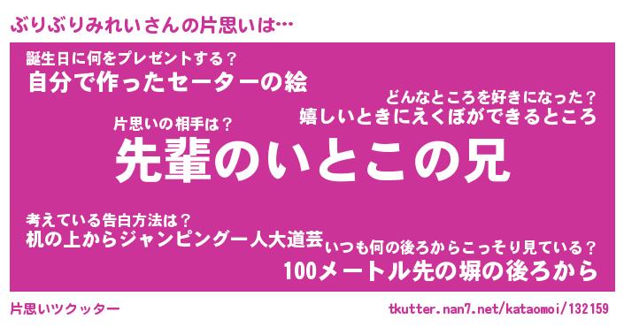 | ヘコむあだ名 | 『ぶりもー』『つくし』『ぶりっ子』 |
