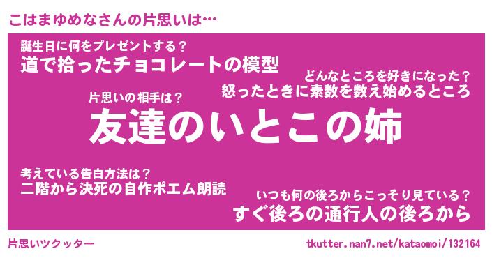 | ヘコむあだ名 | 『こはもー』『豆乳』『こは太郎』 |