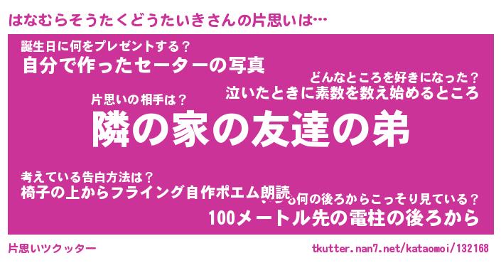| 胡散臭い通販商品みたいなあだ名 | 『必ず成功する霊験あらたかなお札…その名も「はなむらそうたくどうたいき」』 |