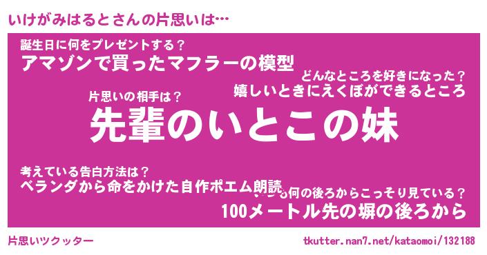 | ヘコむあだ名 | 『いけもー』『なまこ酢』『いけっ子』 |