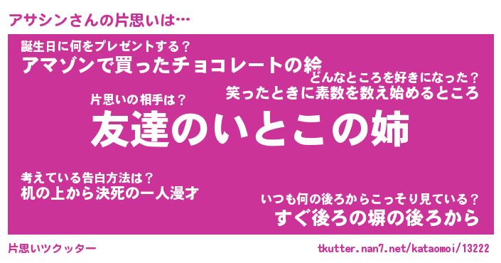 | 意味不明あだ名 | 『ペロリンアサシン』『永久保存アサシン』 |