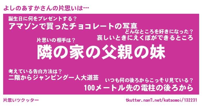 | 胡散臭い通販商品みたいなあだ名 | 『モテモテ間違いなし水晶球…その名も「よしのあすか」』 |