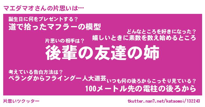 | ヘコむあだ名 | 『マエっふぃ~』『牛乳』『マエを』 |
