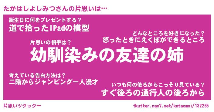 | 肩書あだ名 | 『たかはしよしみつ御曹司』 |