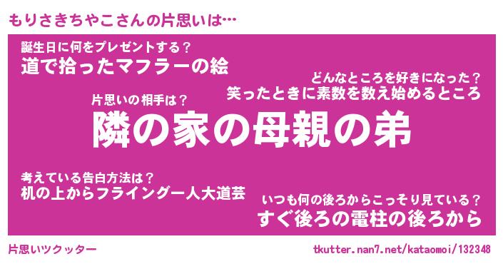 | 胡散臭い通販商品みたいなあだ名 | 『必ず成功するブレスレット…その名も「もりさきちやこ」』 |