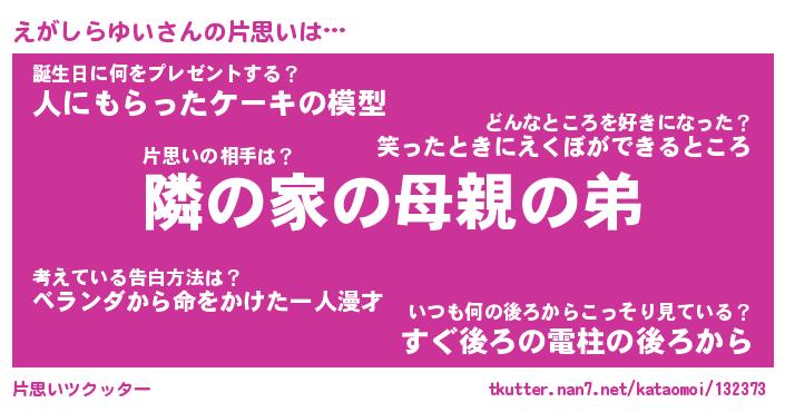 | ヘコむあだ名 | 『えがにー』『つくし』『えがぷりん』 |