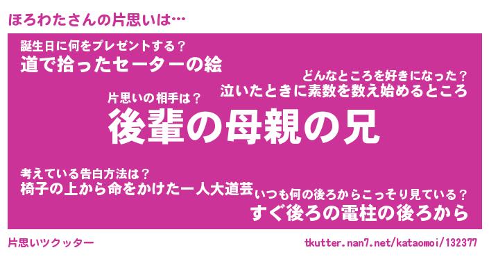 | ヘコむあだ名 | 『ほろふぇ~』『豆乳』『ほろっ子』 |