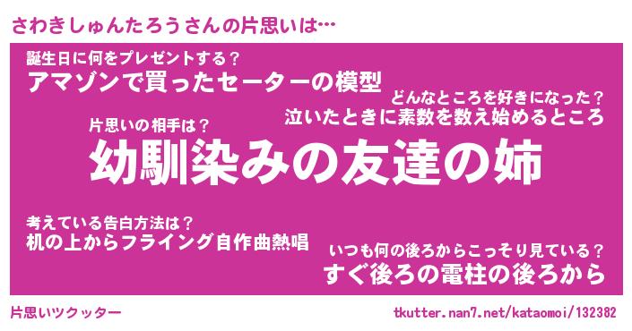 | 男性向けラノベタイトル風あだ名 | 『さわきしゅんたろうの憂鬱』 |
