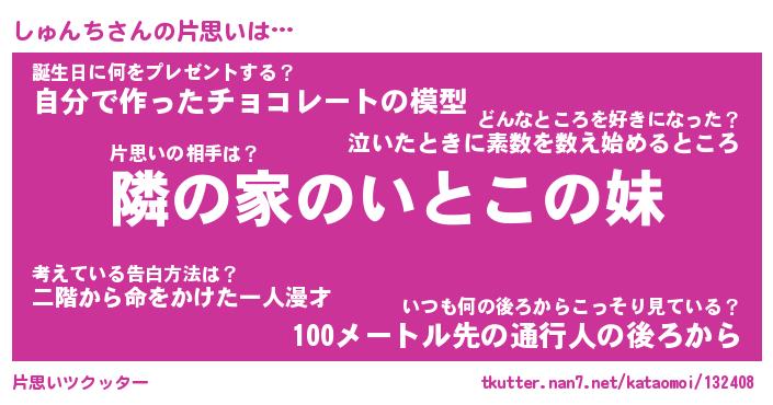 | ヘコむあだ名 | 『しゅにゅー』『つくし』『しゅ太郎』 |