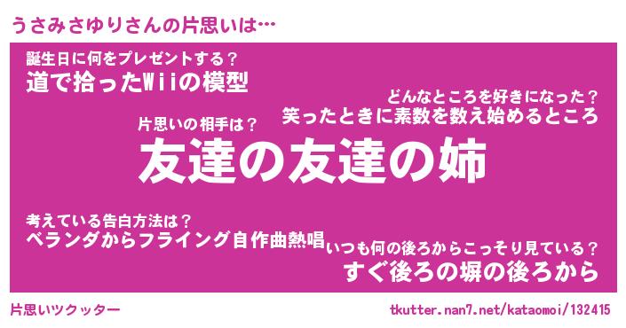 | ヘコむあだ名 | 『うさっふぃ~』『豆乳』『うさっぺ』 |