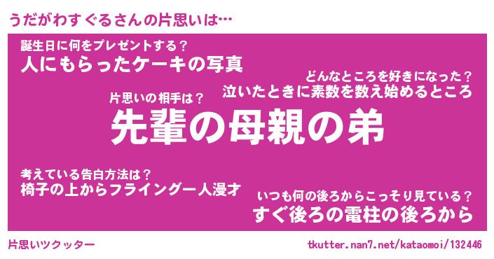| ポケモン風あだ名 | 『ウダチュウ』『ウダガダネ』 |