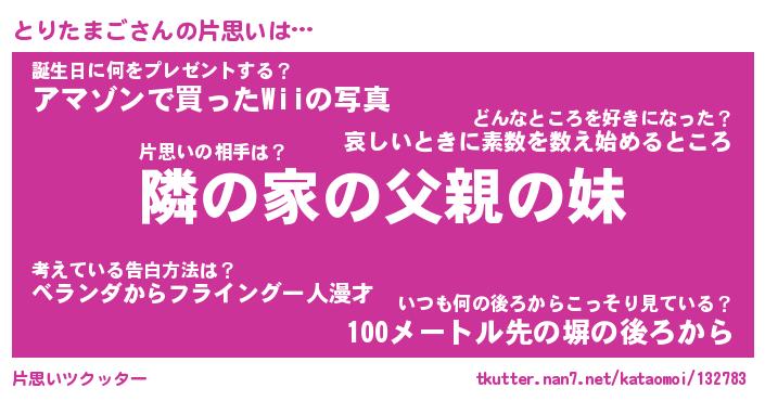 | ファンタジー風あだ名 | 『トリフェル』『エターナルトリタマゴー』 |