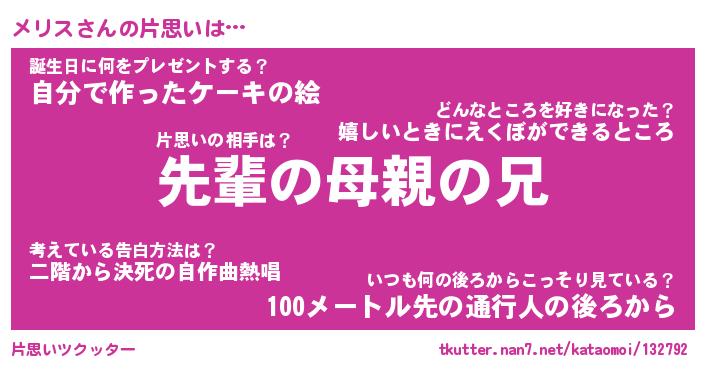 | ヘコむあだ名 | 『メリにー』『牛乳』『メリお』 |