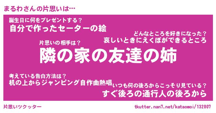 | ヘコむあだ名 | 『まるっふぃ~』『つくし』 |