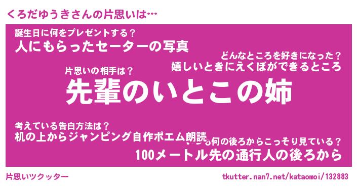 | ツイッター | くろだゆうきさんのツイッターID『katatsumuri_kun』 |