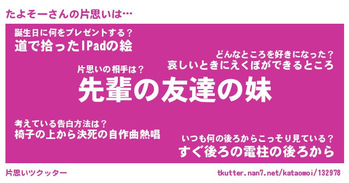 | 2回繰り返すあだ名 | 『たよたよ』『たたよよ』『こつこつ』 |