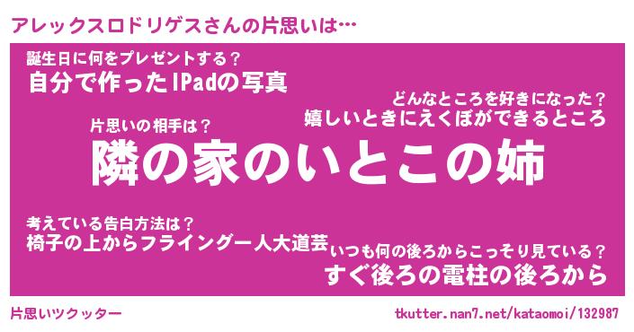 | 意味不明あだ名 | 『ペロリンアレックスロドリゲス』 |