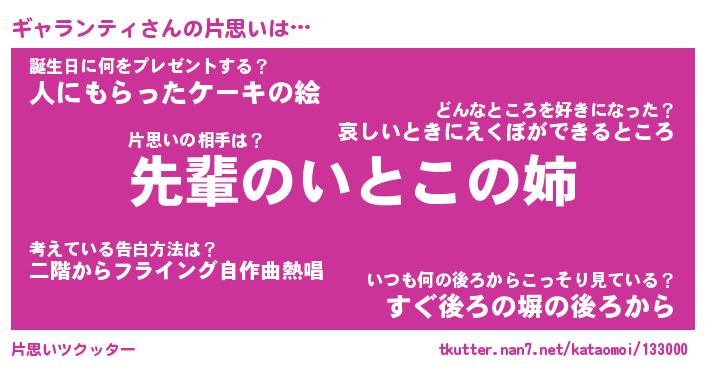 | 男性向けラノベタイトル風あだ名 | 『ギャランティの憂鬱』 |