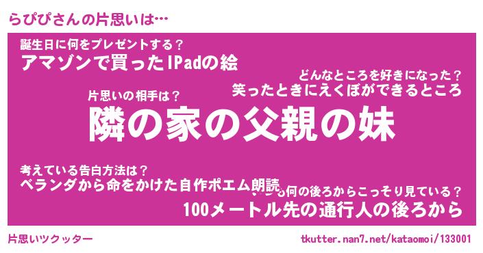 | ヘコむあだ名 | 『らぴにゅー』『なまこ酢』 |