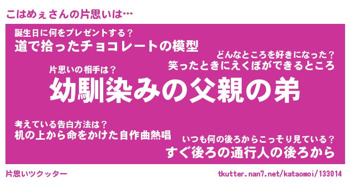 | 胡散臭い通販商品みたいなあだ名 | 『必ず成功する水晶球…その名も「こはめぇ」』 |