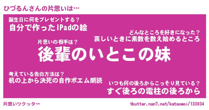 | ヘコむあだ名 | 『ひづにゅー』『つくし』『ひづ太郎』 |